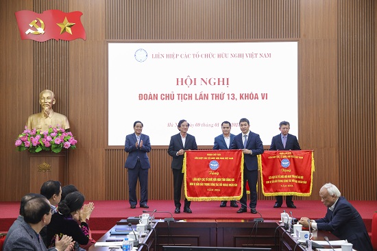 Liên hiệp các tổ chức hữu nghị tỉnh nhận cờ thi đua dẫn đầu.